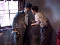 Outside, there's a guy dressed as a Victorian Bobby. When Robert poses in