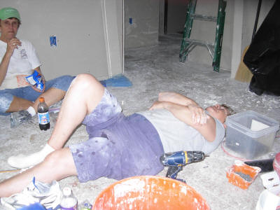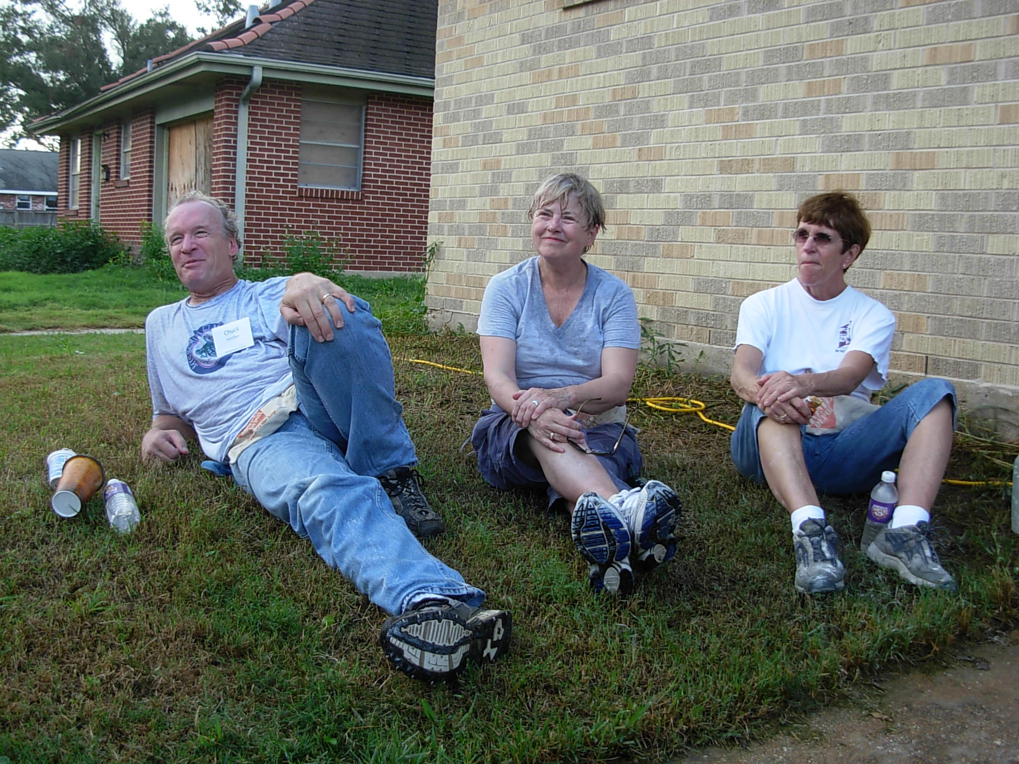 Swimming dogs and underwater columbariumsTues, Oct 7, 20086:30 amNow that we know where we're going, we don't have to be outside at 7:10 am to do our morning service and race out to the job sites. So everything happens half an hour later, and I get to sleep in until 6:00 am. (The cook starts the coffee, which is essential for a group from Seattle to function.) Sunrise over the Rite Aid This morning I'm doing a make-ahead French Toast (which I made-ahead last night), so I fire up the oven, toss it in and head downstairs to read a local paper called "The New Orleans Levee" with the motto "We Hold Nothing Back." It's like "The Onion" only local, and I read about the coffee gang wars (with the Starbucks Latino Kings) while I drink my coffee. (I just discovered that I've been spelling "levee" wrong all along. This is something that Laura would have corrected right off the bat, but she's not on the bat, so you get fuzzy spelling.) Since I'm not making dinner tonight, I'm heading out on a work crew, so that means I need to remember to eat breakfast (yesterday I forgot) AND make my own lunch. I've been warned that where I'm headed is hard work and I should pack a big lunch, so I toss in extra Fig Newtons. 8:10 amFive of us clamber into a van driven by Carl (one of us workers) and head off to our work place. It is amazingly humid outside. The cars look like they've been rained on, but it's just condensation from the humidity (benches that are under cover are also soggy). The humidity seems to be about 200% and just thinking hard makes you sweaty. Nope, that's not rain; that's a dew point of 70° F 8:15 amWe arrive at our workplace. It's so close that if it's raining at our workplace, it's raining at the Home Coming Center! It's a duplex, with a unit up front and one in the back. The building has a brick outside that's been stripped to the walls and struts and our job is to add dry wall and other stuff (which I haven't done yet, so I don't know what it is). "Our" house! (Is a very very very nice house!) The deal is that the homeowner lived two houses down, but his house got totaled and the insurance company wouldn't pay to rebuild it (their last offer was $20,000; "Look at the neighborhood! It's devastated! Property values are WAY down!"). So he bought this duplex two doors down while he, his wife and his teenage daughter live in a trailer. (This trailer is tiny. The RV we rented for the I-State tour was bigger. Imagine living there for months, but don't imagine for too long or you'll go nuts.) Anyway, we get to work hanging drywall. Sandy and Mary get their tools organized 9:00 amThe coolest thing about drywall is that I get to use a gun-shaped tool (an electric screwdriver). The second coolest thing is that this is something I know how to do! I learned it building houses (well, two houses, but still more than one) in Mexico with Fr. Dan through Gateway Mission. That means I can actually be useful! 10:00 amWe're on break, trying to drink at least five gallons of water each to make up for what we've sweated out. I soaked my first shirt through with sweat and switched to a backup shirt. Chuck, Sandy and Mary demonstrate the proper way to take a break Our crew chiefs (Lindsay, Amy and Brian) are still learning Connie (the housewife from last night) brings by a couple of guys from Bridgeport, Texas. Seems their hometown is about in the same shape that New Orleans was three years ago and they are desperately looking for tips. So Connie's showing them how her outfit works (it's officially called Beacon of Hope). We're explaining to them that we're demonstrating the importance of taking regular breaks. They seem like a couple of nice guys who are totally in over their heads. But Connie's helping them, so it'll work out alright. Connie shows the boys from Texas how it's done Louisiana style 11:00 amThe owner shows up and sees walls where before there was empty space and is thrilled to meet us. The young people who have been our work party leaders have been calling him Mr. Brown, but he tells us to call him Billy-Bob. [I had to sign a thing with the Diocese of New Orleans that says I won't reveal any identifying characteristics of the folks we're working for. So this isn't his real name. And he might be a she.] (Dog lovers might want to grab a tissue for this next part.) I've been working in the back unit, hanging drywall with Chuck. Outside the back door is a husky dog chained to a post. He's quiet, but he's got a weird thousand-yard stare that's pretty unsettling. Rover: note the thousand-yard stare Then Billy-Bob tells us about Rover (also not HIS real name). They've owned Rover since he was a puppy (Rover picked them out at the pound) and they were raising him to be a guide dog (on account of Huskies are well-known for their smartness). Then Katrina happened and Rover was left behind (at that time most shelters wouldn't allow pets). Rover swam for three days before he got rescued and taken to the local humane society. Once there, he was put in a cage, which he hated and he practically tore his nose off trying to get out of it. A family doing pet rescue work up in Illinois heard about it and offered to take him in (since they had a place where he could run around). Meanwhile, Billy-Bob is desperately searching for Rover and checking in regularly with the local Humane Society. One day he says, "This is the last damn time I'm checking for him. That's it. Today." Of course, no Rover, and no word of where Rover was. When he got home, Billy-Bob's teenage daughter showed him a picture on the Internet. It was Rover. Now to get him home, because Rover doesn't like cages, remember? Well, the Illinois folks are just as crazy as any dog lovers, so they drive Rover back to New Orleans in their Cadillac Escalade. "Hell," says Billy-Bob, "I ain't never even been to Illinois. That damn dog has traveled more than I have." He pauses. "Ain't never been in a Cadillac Escalade, either." Of course, Rover isn't training to 